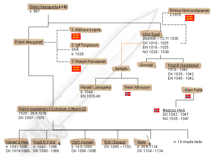 Svend II:ta pidetään kuninkaana, jonka valtaantulo lopetti viikinkiajan Tanskassa ja jonka hallituskaudella Tanskan keskiajan katsotaan alkaneen. Svend meni nuorena naimisiin etäistä sukua olevan naisen kanssa, ja paavi käski lopettamaan liiton sukulaisuuden perusteella. Svend totteli, mutta ei mennyt enää uudelleen naimisiin. Svendillä oli useita rakastajattaria ja hän sai heidän kanssaan ainakin 19 lasta. Svendin lapset hallitsivat Tanskaa vuoteen 1134 asti, ja hänen miespuolisten perillistensä jälkeläiset hallitsivat aina vuoteen 1387 asti, jolloin Svendin perillinen Margareta I valittiin Tanskan hallitsijaksi.